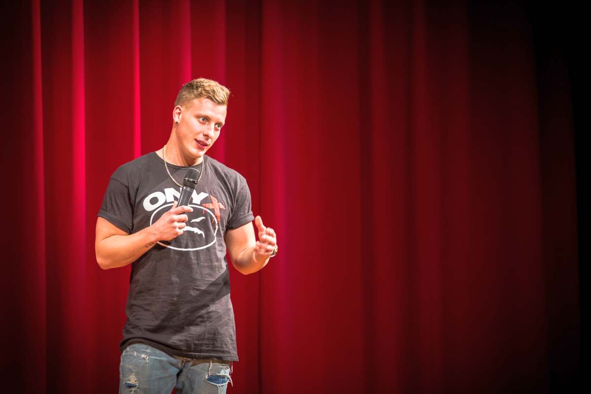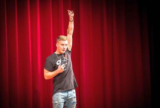 Der Poetry Slammer, Moderator und Stand-Up Newcomer erzählt mit gefühlten acht Wörtern pro Minute absurde, wortgewitzte, um die Ecke gedachte Anekdoten und Geschichten aus dem Leben eines jungen Berliners - und zwar in alter Hauptstadtmanier. Nicht hip, nicht zugezogen, sondern rotzig und schnörkellos. Er schafft es, Witze, die keine sind in lauten Lachern und knallendem Applaus aufgehen zu lassen. Und das dicht an dicht – jeder eigen, jeder innovativ. Mit seinem einzigartigen Style ist er schnell zu einem der bekanntesten Slampoeten im deutschsprachigen Raum geworden.